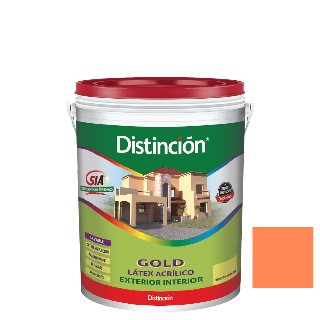 DistinciĂ³n Gold Exterior – Interior color, es un producto elaborado con materias primas de altĂ­sima calidad. Es un producto lavable que logra un acabado mate, homogĂ©neo, otorgando una excelente terminaciĂ³n. Posee un muy bajo nivel de salpicado.